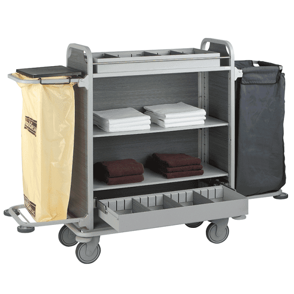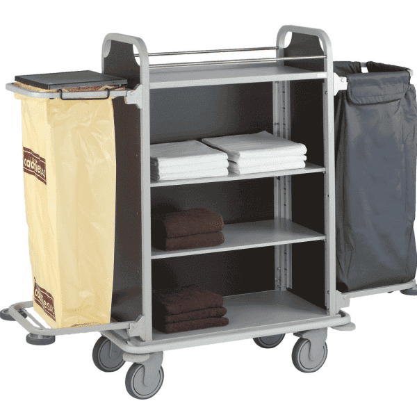Carucior Housekeeping Slim Fidji by Caddie – dotare profesională pentru industria hotelieră, concepută pentru utilizare intensivă și pentru a oferi fiabilitate și confort oaspeților.
