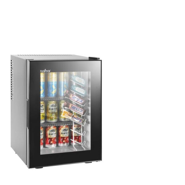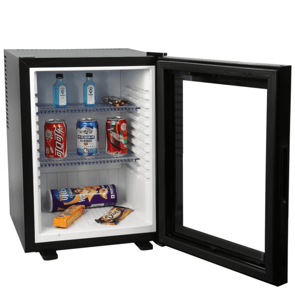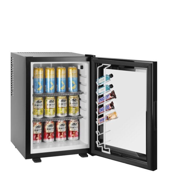 Minibar profesional pentru camere hotel cu volum de 40L-100% silentios si usa din sticla tip E-Glass.